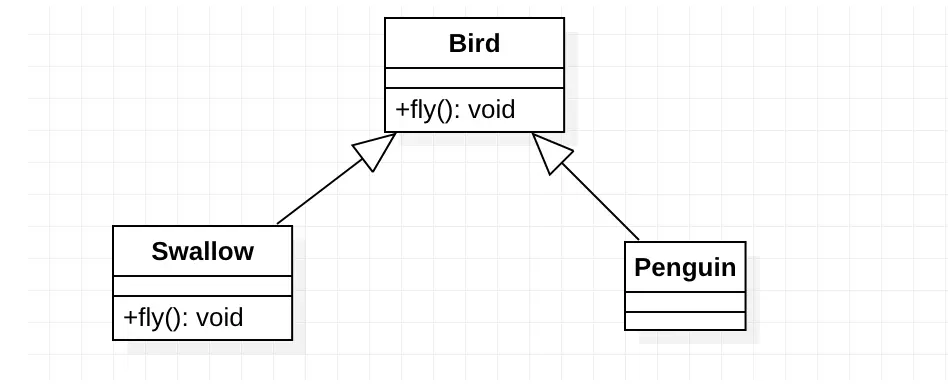 例如鸟有一个fly() 方法,燕子是一种鸟,燕子继承鸟类并重写了 fly() 方法,企鹅是一种鸟,企鹅继承了鸟类但是企鹅不能飞,这就相当于是改变了鸟类的功能,不能说企鹅不能飞,所以鸟不能飞