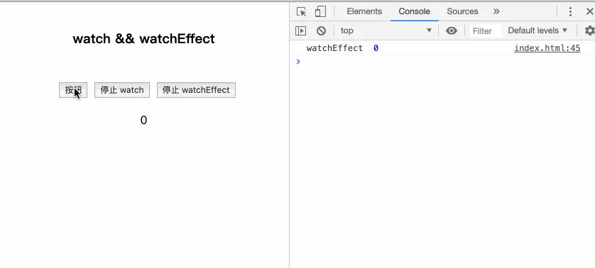 <button style="margin-left: 10px" @click="handleStopWatchEffect">停止 watchEffect</button>
