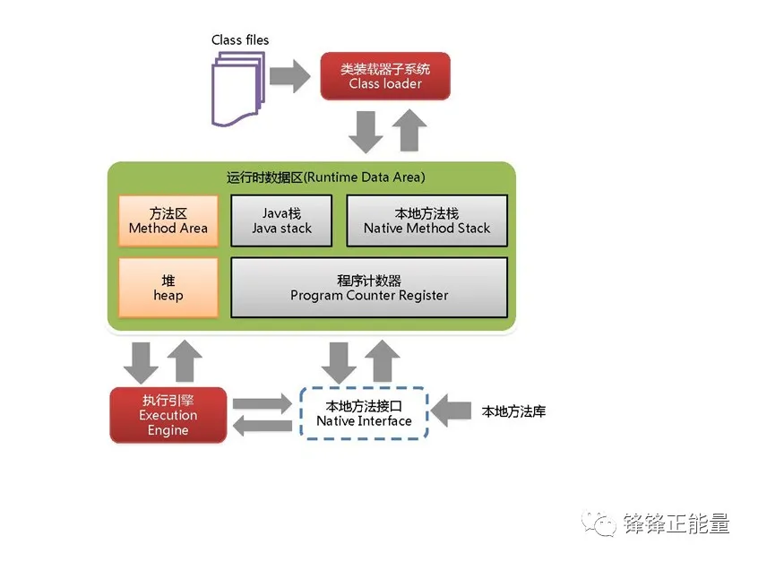 Jvm的体系结构由类装载器子系统,方法区,java栈,本地方法栈,堆,程序计数器,执行引擎,本地方法接口以及本地方法库等组成