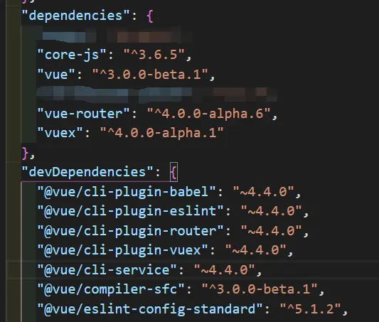 安装完成后看一眼package.json,如果按照上述步骤操作,package.json相关的一些vue和周边应该是这样子: