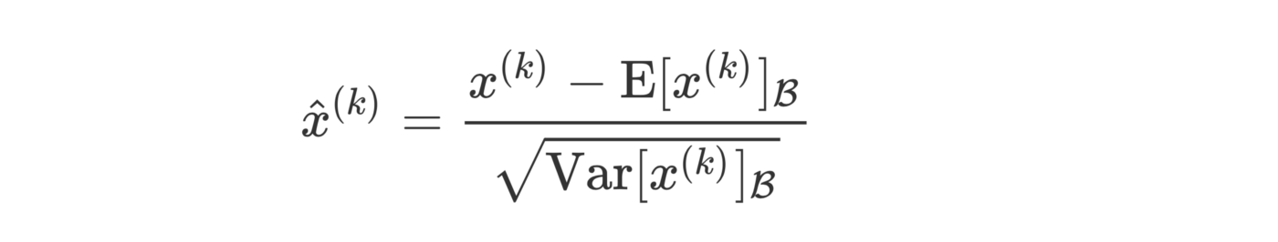 对于具有d维输入的层x = (x1, x2, ..xd)我们得到了以下公式的归一化(对batch B的期望和方差进行计算):