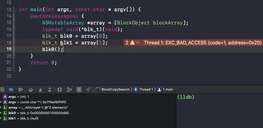__block_impl有4个成员变量,我们通过lldb观察一下myBlock的结构如下图:
