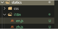 2、然后在我们的项目中的statics文件夹下面添加i18n文件夹,然后在文件夹中新建我们的json格式的语言包目录大致为: