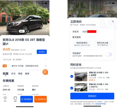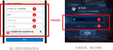 - 完整的交互周期:对于业务活动类,需通过完整的交互流程,明确的产品概念传达活动目的及业务重点,如在汽车之家中通过H5页面进入新车二手车落地页,表单中可以自动填充用户相关信息姓名电话,在完成提交留资线索,完成落地页在站内宣传导流到新车推广的目的。