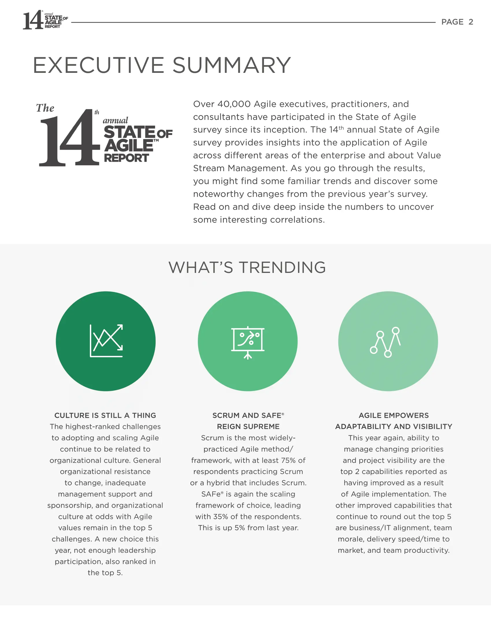 您的组织是否在实践或规模化企业敏捷性?敏捷状态报告提供了世界上最全面的数据,用于基准化您的敏捷实践并计划下一轮扩展。