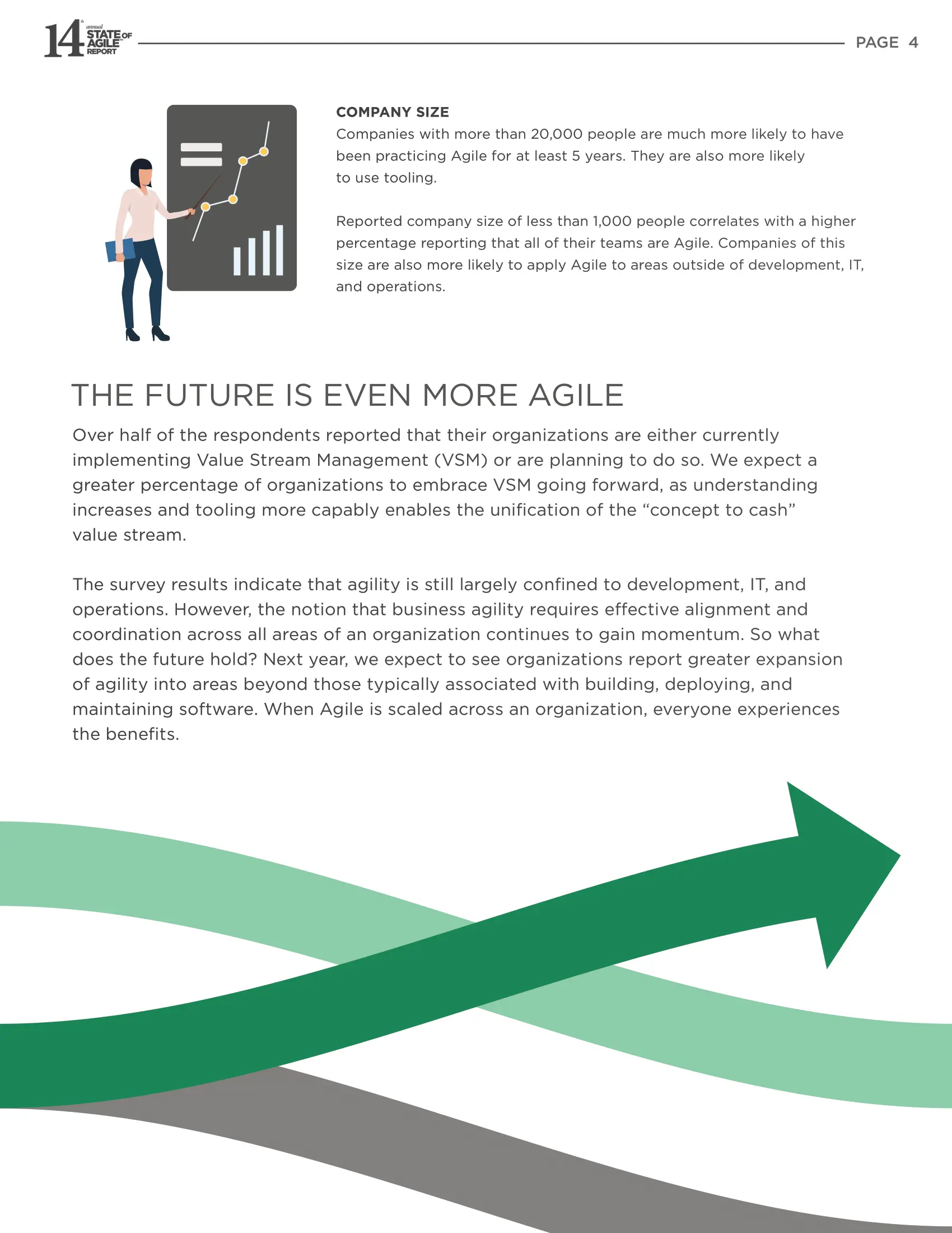 超过40,000名敏捷高管、从业人员和顾问参加了敏捷状态报告自成立以来的调查。(14年的总调查人数) 第14届年度敏捷状态调查提供了有关敏捷在企业不同领域中的应用以及价值流管理的见解。 查看结果时,您可能会发现一些熟悉的趋势,并发现上一年的调查中有一些值得注意的变化。 阅读并深入了解数字,以发现一些有趣的关联。