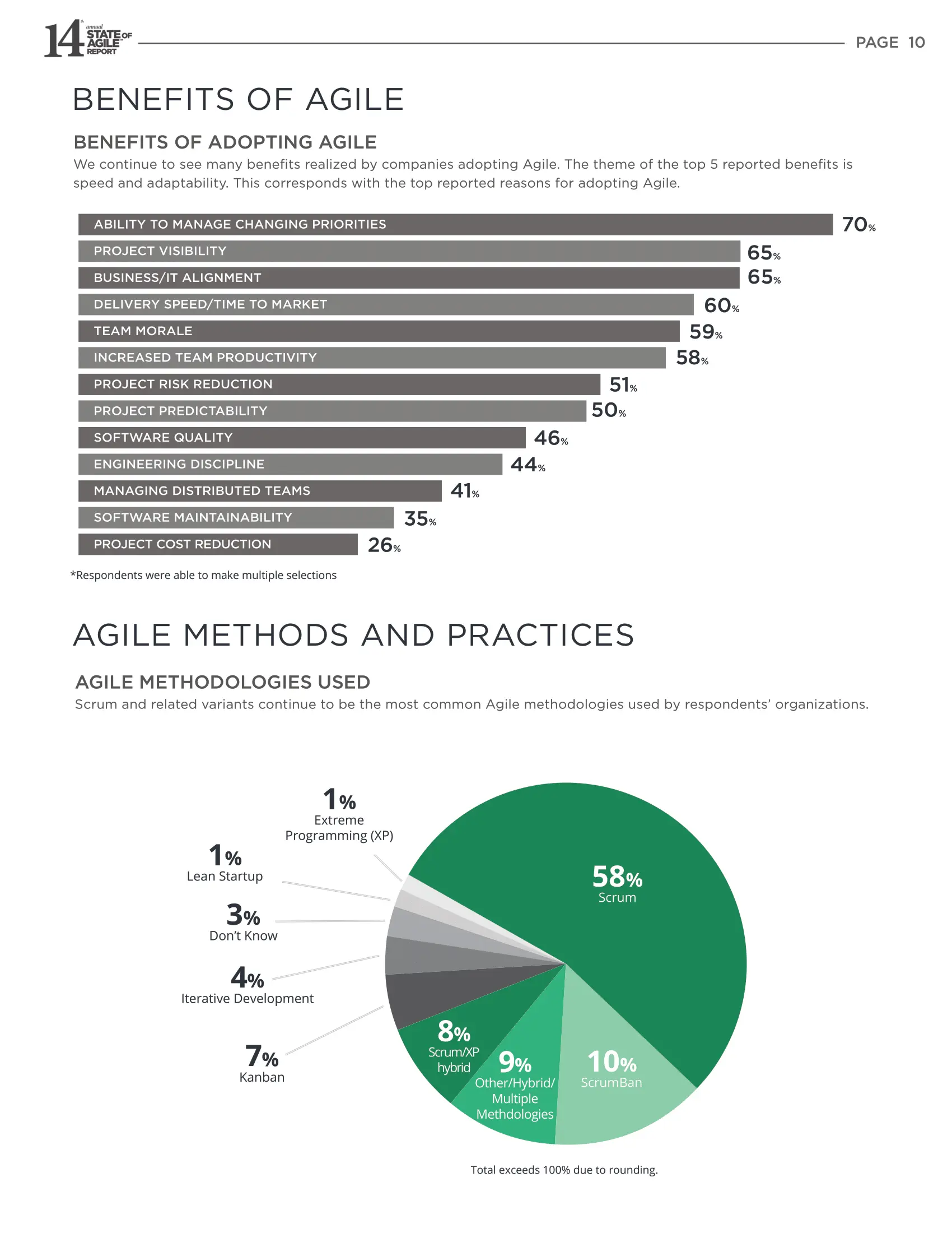 我们持续地看到采用敏捷的公司可以实现许多好处。报告的前五项收益分别是速度和适应性相关的。这与采用敏捷的报道最多的原因相应。