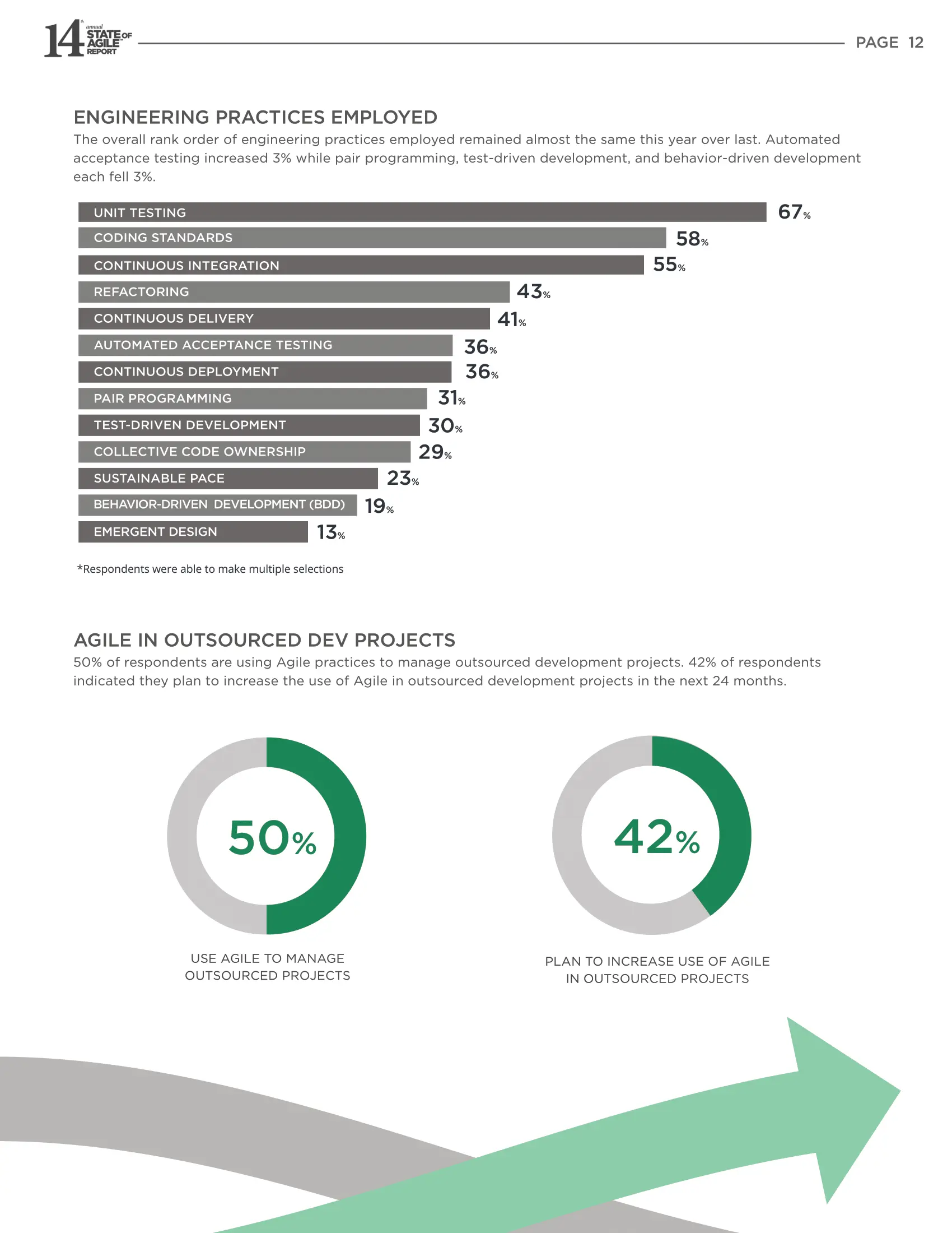 50%的受访者使用敏捷实践来管理外包开发项目。 42%的受访者表示,他们计划在未来24个月内在外包开发项目中增加对敏捷的使用。