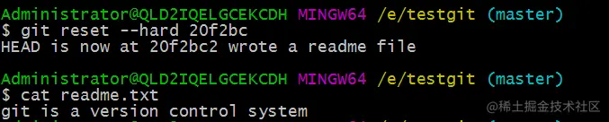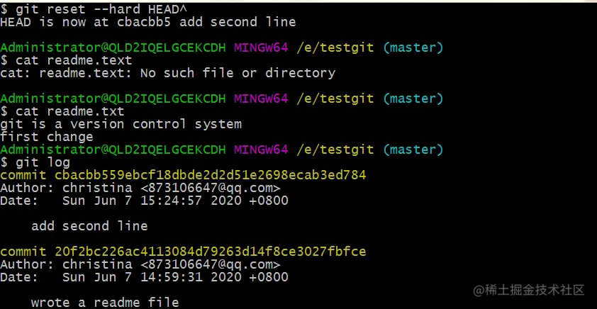 通过git reflog获取到commit id内容的版本,查看命令历史