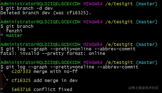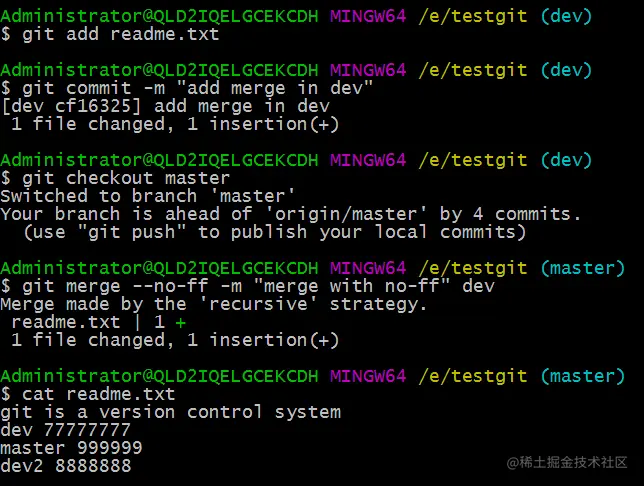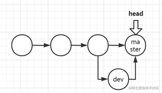 - 普通模式git merge --no-ff -m "xxx" dev合并dev到master的效果: