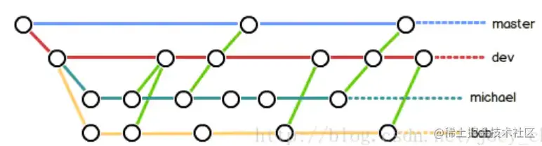 每个人在自己的分支上干活,先合并大家的结果到dev分支,最后的稳定版提交到master,合并时用--no-ff 分支名,普通模式合并,保留分支更改历史