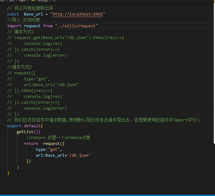 - 在HelloWord的组件,将request文件人引入 import request from "../utils/request"文件