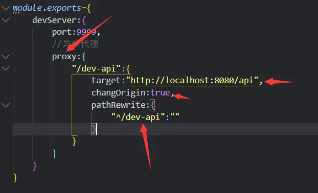 我们可以认为/dev-api是target配置你跨域接口的名称