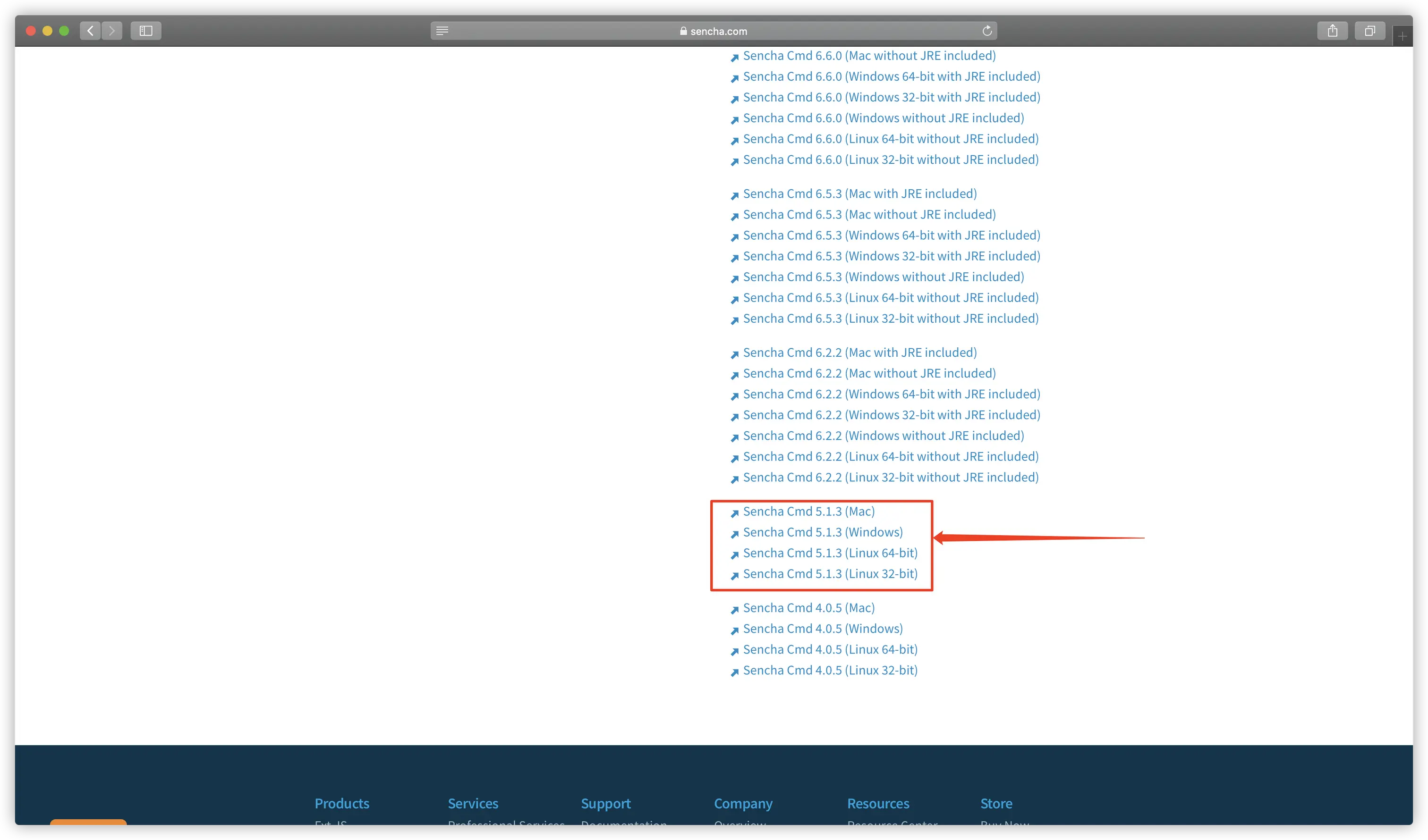 - 打开Sencha Cmd下载网站,下载Sencha Cmd。注意sencha touch2.4.2对应的版本为5.1.3。