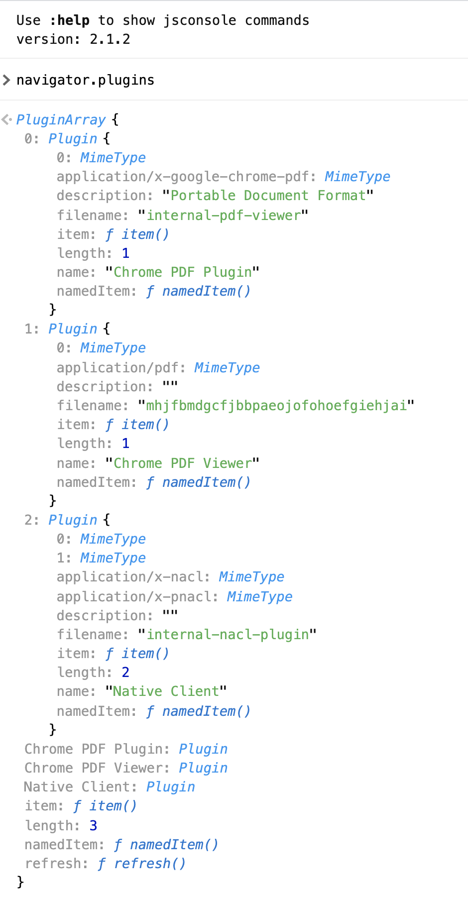 Navigator.plugins属性返回一个类似数组的对象,成员是 Plugin 实例对象,表示浏览器安装的插件,比如 Flash、ActiveX 等。