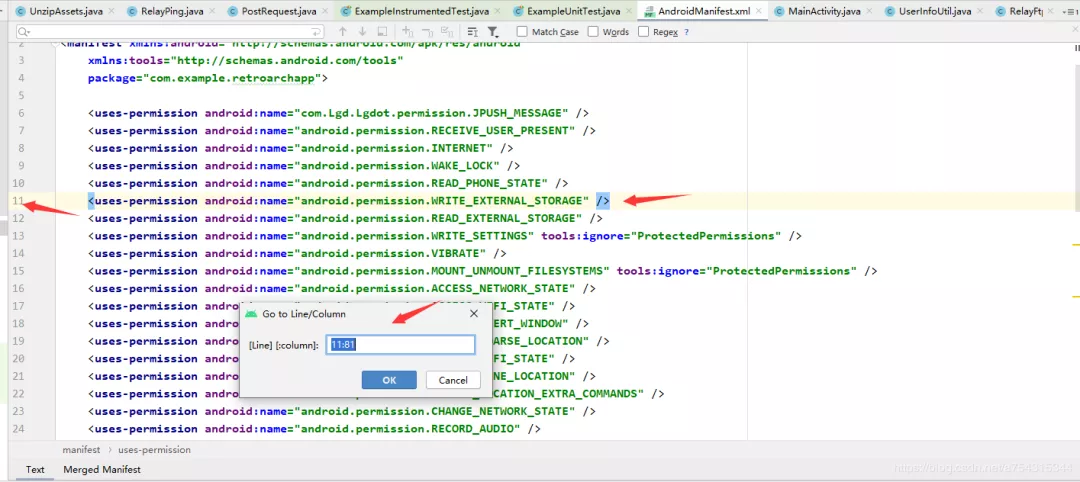 同时按下Ctrl+G快捷键弹出快速定位框,在框中输入行数点击OK即可快速切换到对应的行数,如下图所示。