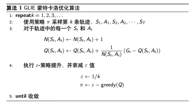 - 策略评价方法为:Q 函数的蒙特卡洛策略评价