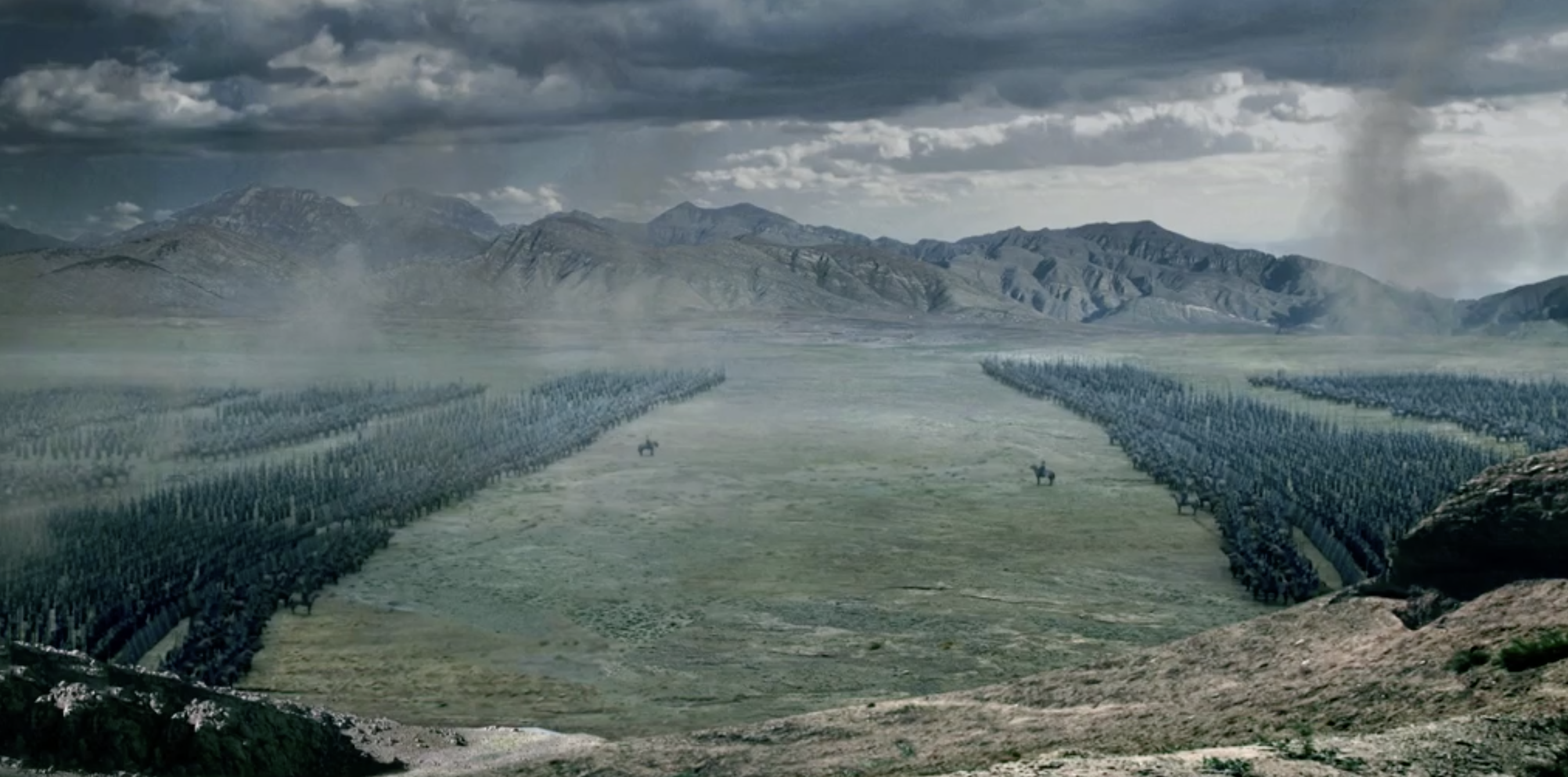 第二轮,双方皆出百人,少倾,列队完毕。