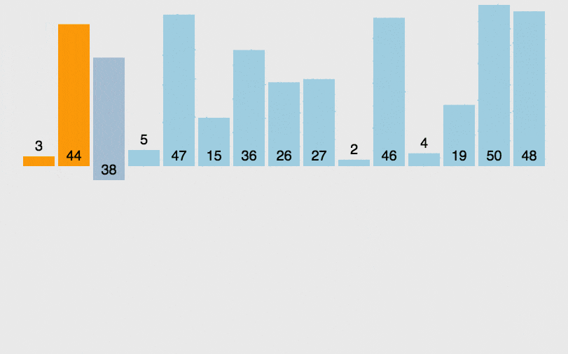 马岱来到队首,只见其从第一人开始,比较第一人与第二人之高矮,若第一人高于第二人,则交换两人站位。继续比较第二人与第三人,一趟结束,最末尾之人便为队伍中最高之人。接着来到队伍开头,故技重施,不断交换,一直将队伍中次高之人交换到倒数第二的位置。