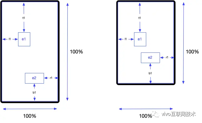若元素在水平或垂直方向上,并不吸附于任意一条边,则令其相对于该方向上的两条边的距离比例固定;比如若元素同时不吸附于视口左边和右边,则元素相对于视口左边和右边的距离之比固定,值为在页面设计器中,配置页面时该元素距离视口左边和右边的距离之比。