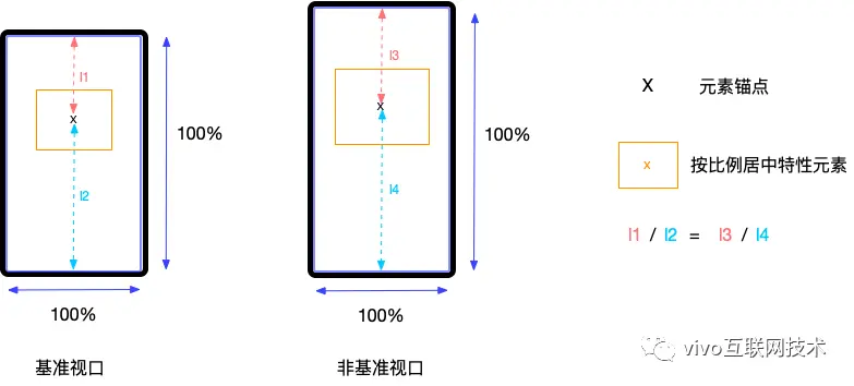 不同视口中,元素 高度的一半加上元素顶部到屏幕顶部的距离的和 的值,与元素 高度的一半加上元素底部到屏幕底部的距离的和 的值,这两个值 相等。