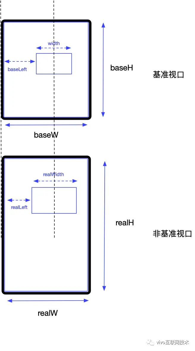 实际视口即页面运行时的视口,根据不同比例,可能是基准视口,也可能是非基准视口。