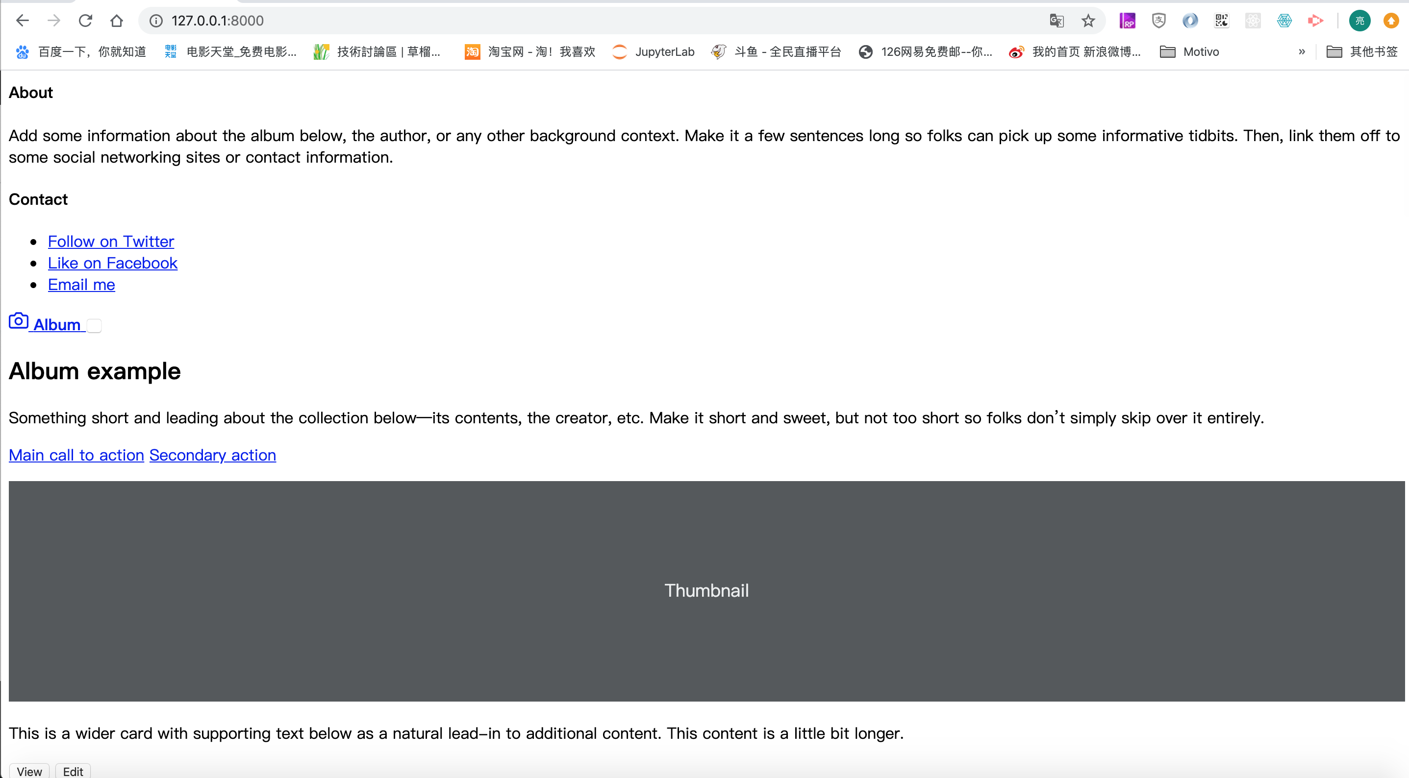 然后我们重启Django服务器,查看8000端口的网页,发现长这个样子: