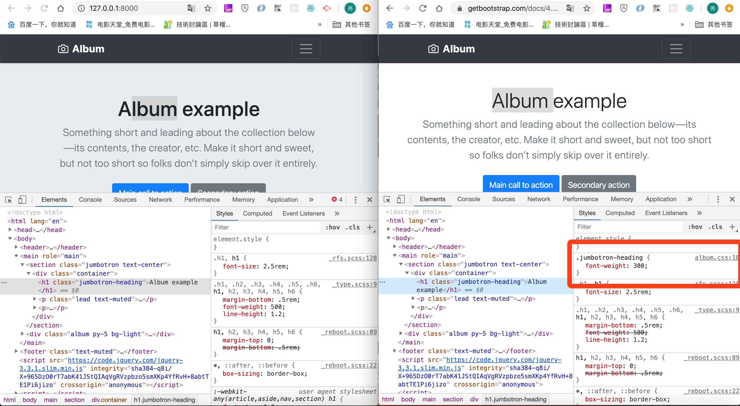 我们在前端使用的CSS库为最新的Bootstrap 4.