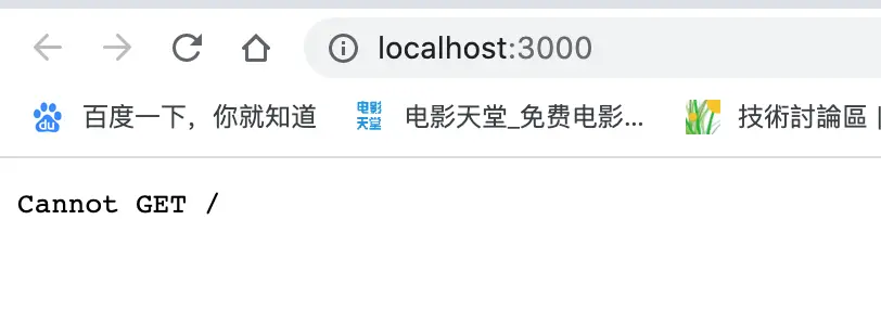 接着我们再看我们的浏览器里面,因为路径不对,目前浏览器里面显示的'Cannot GET':