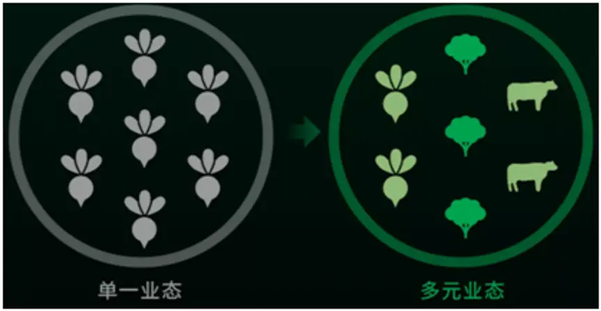 从前,小马有一块儿地,种地卖米挣银子,生意勉强糊口。后来,小马发现买米的村民是为了回去做饭,一顿饭光只有米可不行。于是小马又开始种菜养猪,这下村民们一次性可以从小马这买来做饭需要的一切,小马赚的盆满钵满。