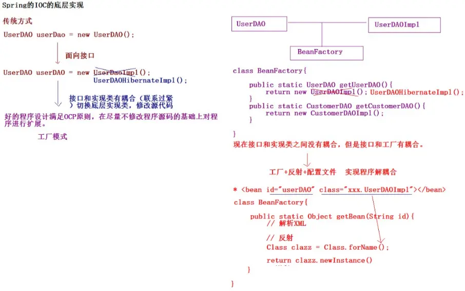 答:可以通过Spring的IoC的底层实现,具体如下图