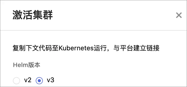 在集群激活界面复制v3版本激活命令,并使用Helm v3版本客户端进行激活即可。