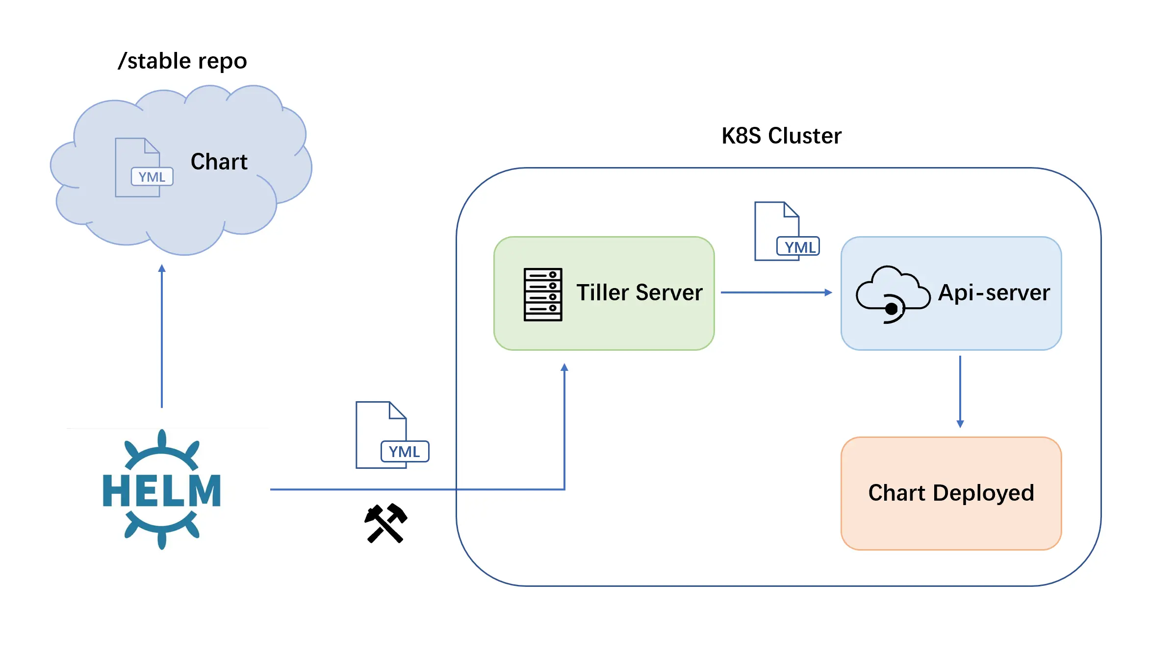Helm设计之初不仅仅作为一个包管理工具,同时也试图作为一个微型的PaaS平台,因此添加了Tiller服务端,在Tiller服务端中有一整套管理流程和更新策略用以支持其作为PaaS平台的设定,但Tiller的存在却与Kubernetes概念产生了一些重合和冲突。