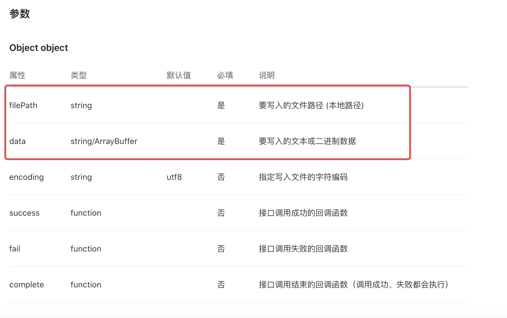 可以看到文档中writeFile还支持base64格式的内容,我们还可以把buffer转成base64然后再调用这个方法,效果是一样的,只不过参数encoding要改成'base64'。