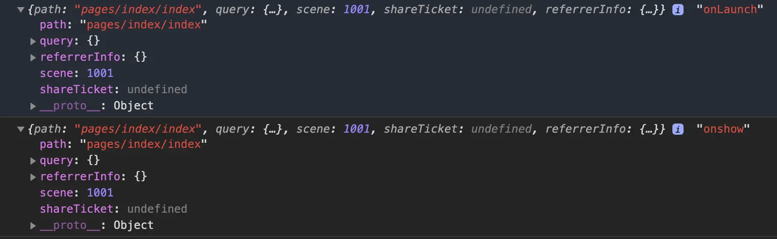 其实app.js里面的onLaunch和onShow方法可以接收一个参数options,我们来打印看看。