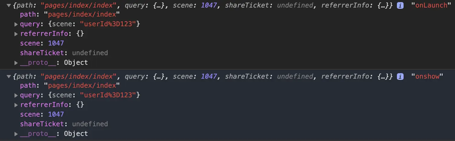 console.log(decodeURIComponent(options.query.scene), 'onLaunch')