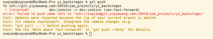 意思就是远端仓库上存在本地仓库上没有的内容,解决方式很简单,就是先用pull 把远端代码拉下来,再push上去。