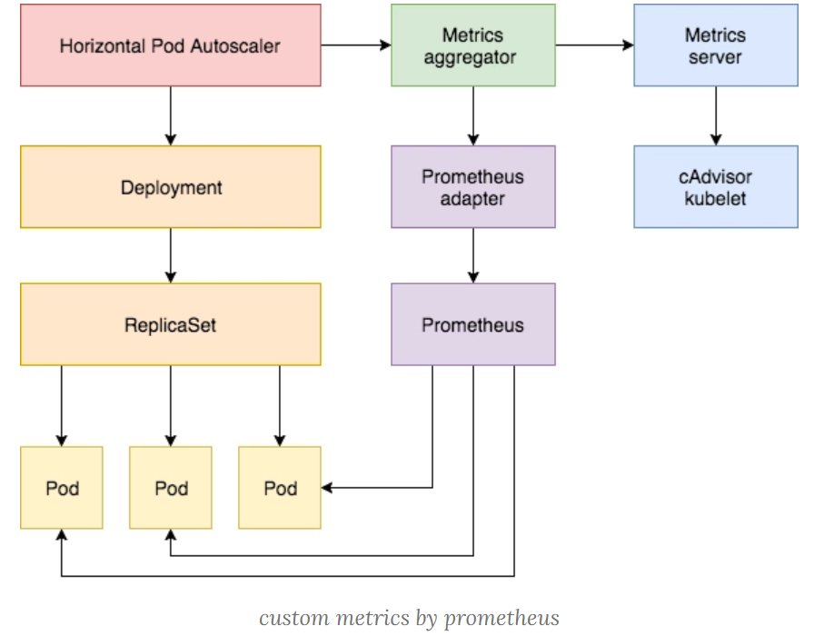 除了基于 CPU 和内存来进行自动扩缩容之外,我们还可以根据自定义的监控指标来进行。这个我们就需要使用 Prometheus Adapter,Prometheus 用于监控应用的负载和集群本身的各种指标,Prometheus Adapter 可以帮我们使用 Prometheus 收集的指标并使用它们来制定扩展策略,这些指标都是通过 APIServer 暴露的,而且 HPA 资源对象也可以很轻易的直接使用。