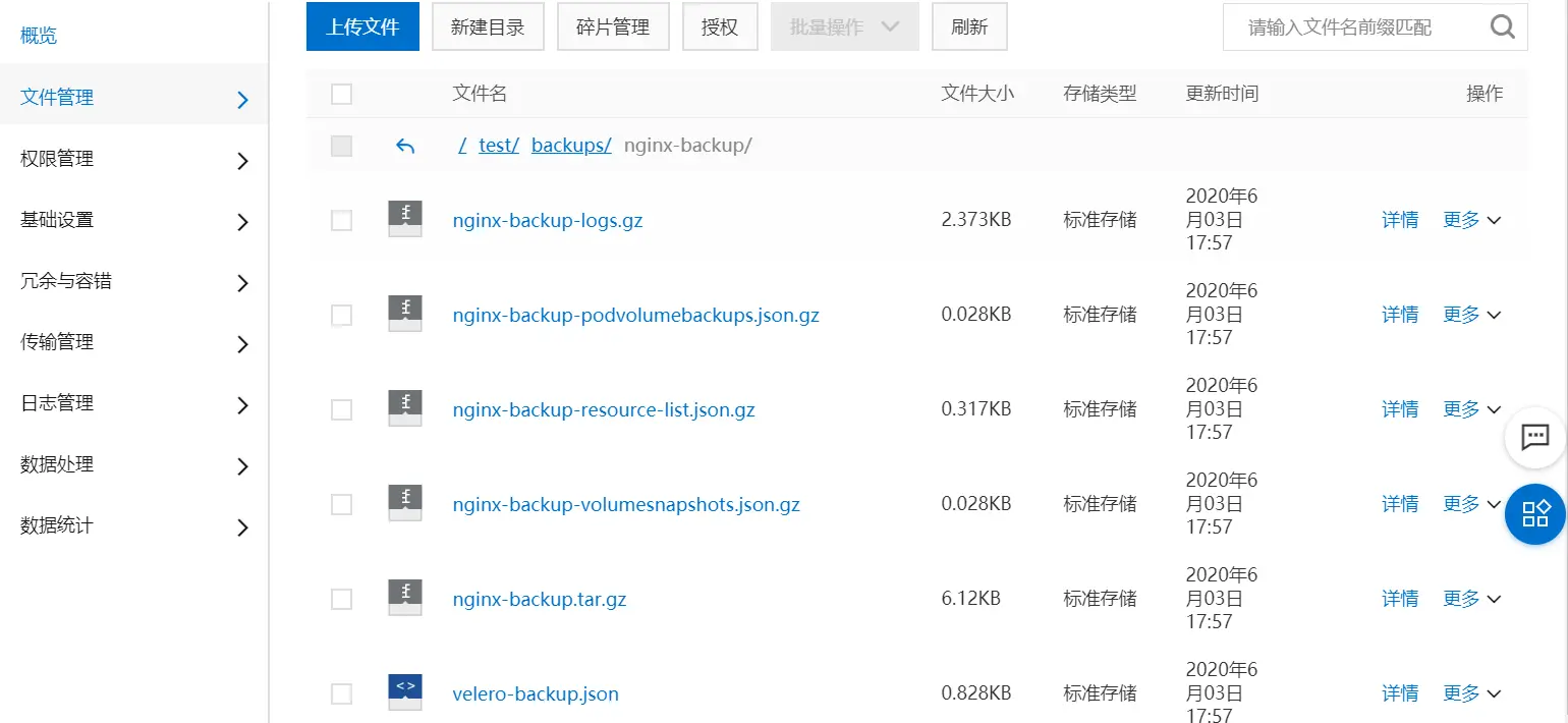 我们可以全量备份,也可以只备份需要备份的一个namespace,本处只备份一个namespace:nginx-example