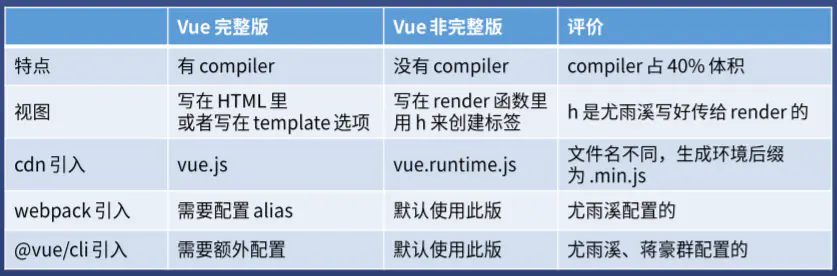 Vue.js分为两个版本,一个是完整版 vue.js,一个是非完整版(只包含运行时版) vue.runtime.js