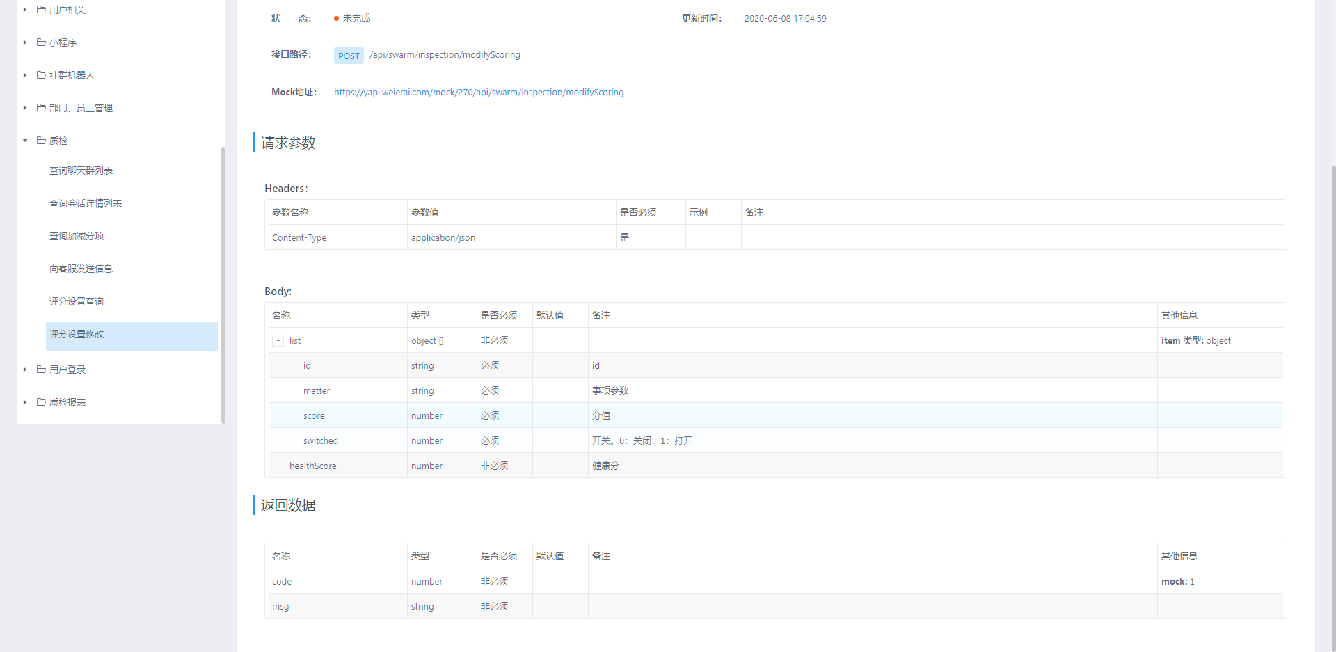 code 的mock值打开yapi必须为1