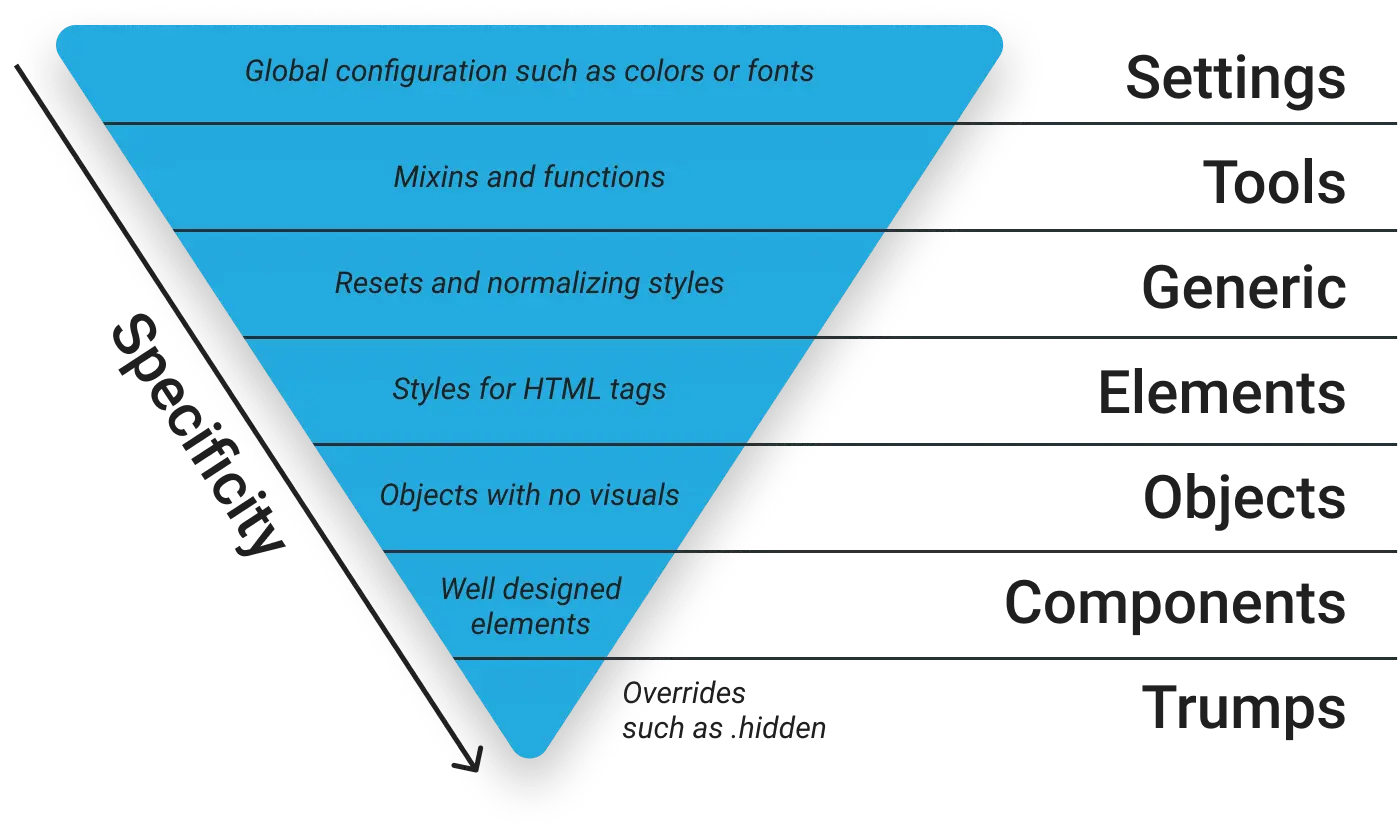 倒三角 CSS 通过引入不同的层来实现不同的特性,帮助你更好地组织你的文件。你走得越深,就越具体。
