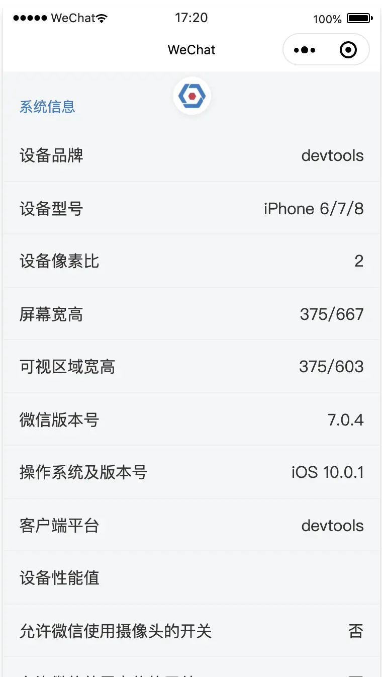 用于快速查看手机系统信息,小程序基本信息,用户信息,授权信息等基础信息,避免反复打开手机设置或者调用小程序原生api进行查看。