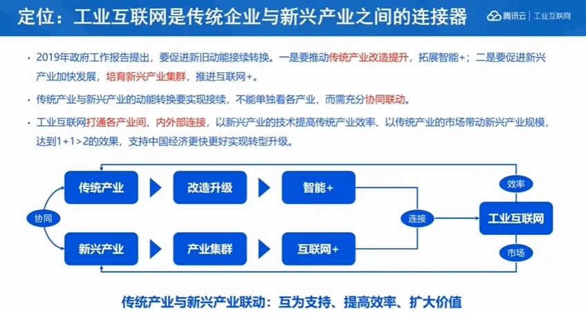 腾讯工业互联网的定位是做传统企业与新兴产业之间的连接器,在整个工业互联网里我们要提供三个能力——连接器的能力、工具的能力以及生态的能力。