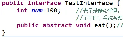 2)接口中定义的成员变量,实质是全局静态常量,默认使用public static final来修饰