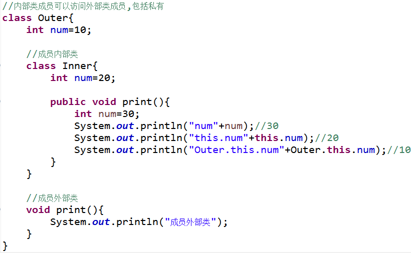 内部类成员可以访问外部类成员,包括私有