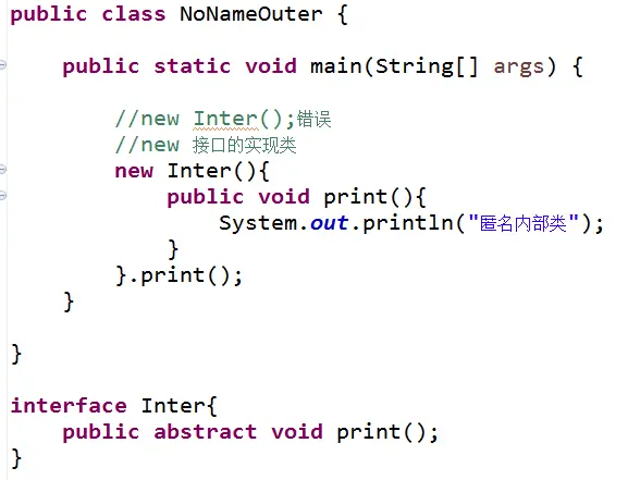 4)接口中定义的内部类都是公共的静态内部类,默认使用public ststic来修饰内部类