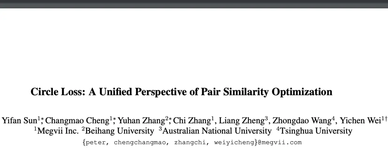 - 提出Circle loss,通过有监督地加权不同相似度分数来进行深度特征学习,能够更灵活地优化,并且有明确的收敛目标。