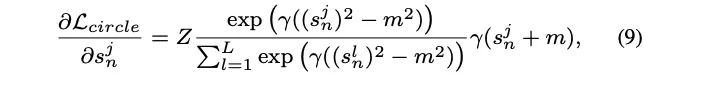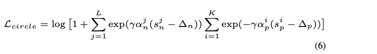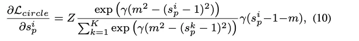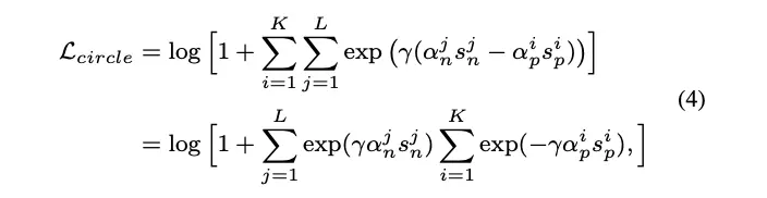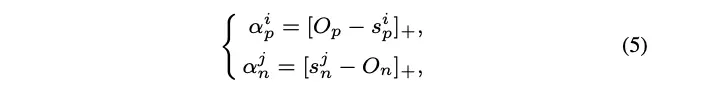 为了让每个相似度分数能够根据当前优化状态调整学习的幅度,先忽略公式1的并调整为Circle loss,如公式4所示,