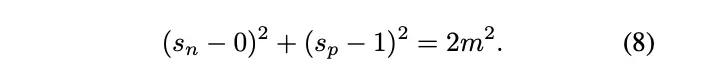 ,即为Circle loss决策边界为圆的弧,如图1b所示,中心点为